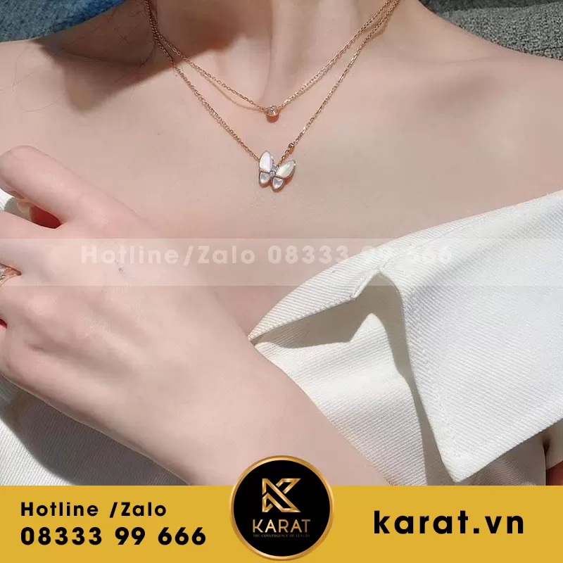 Dây chuyên Van Cleef & Arpels Cánh bướm mặt họa tiết khảm trai 18k Yellow Gold