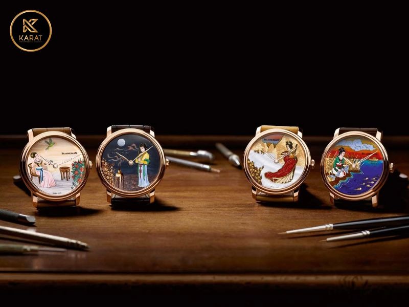 Bộ sưu tập Métiers d’Art là đỉnh cao nghệ thuật của Blancpain, sử dụng kỹ thuật shakudō Nhật Bản và enamel để tạo mặt số chạm khắc tinh xảo như họa tiết thiên nhiên. Các mẫu độc bản như Métiers d’Art Les Petites Heures sử dụng vàng 18K, đá quý, mỗi chiếc mất hàng tháng chế tác. Dòng này không chỉ đẹp mà còn kể chuyện văn hóa, thu hút nhà sưu tập cao cấp.