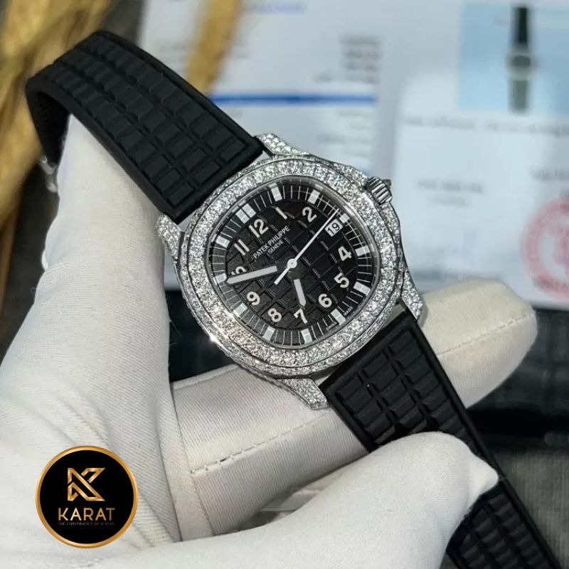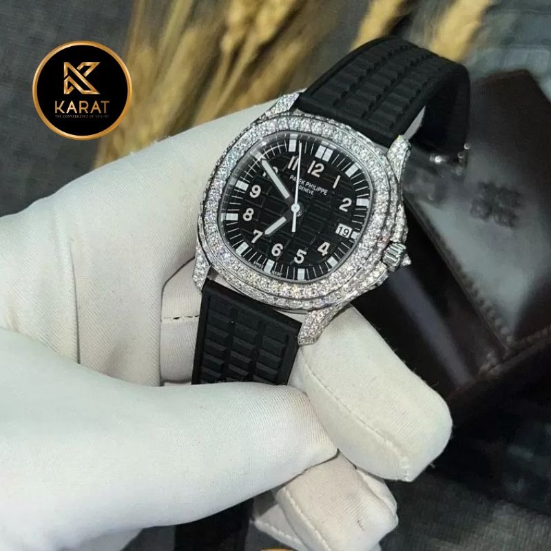 Tại Karat.vn, bạn có thể dễ dàng sở hữu mẫu Patek Philippe 5067 mặt đen độ full Moissanite với mức giá hợp lý, chế độ bảo hành 5 năm – hỗ trợ trọn đời máy, cùng nhiều dịch vụ hậu mãi cao cấp: spa làm mới, thay pin, và thu đổi lên đời.