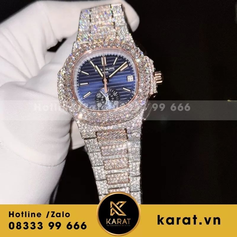 Đồng Hồ Patek Philippe 5980 là biểu tượng của đẳng cấp và phong cách thượng lưu. Phiên bản chế tác bọc vàng 18K full Moissanite kích thước 40mm kết hợp hoàn hảo giữa kỹ nghệ chế tác tinh xảo và sự lấp lánh sang trọng. Từng viên đá được đính tỉ mỉ trên thân vỏ và dây đeo, tạo hiệu ứng ánh sáng rực rỡ nhưng không kém phần thanh lịch. Cùng Karat.vn khám phá sức hút đỉnh cao của tuyệt phẩm này.