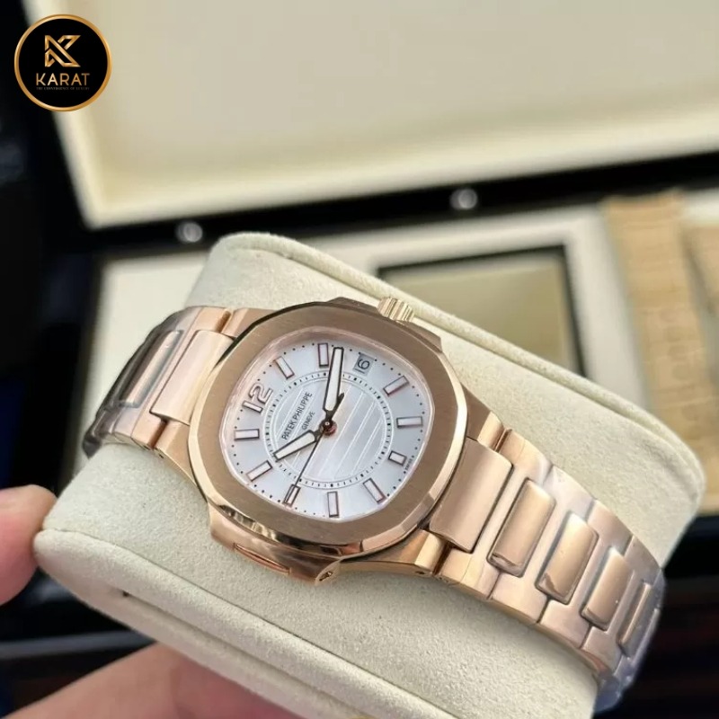 Sở hữu vẻ đẹp thanh lịch và tinh tế hiếm có, đồng hồ Patek Philippe Nautilus 7010 là lựa chọn hoàn hảo cho những quý cô yêu thích phong cách sang trọng nhưng vẫn nhẹ nhàng, hiện đại. Mẫu thiết kế này nổi bật với tông rose gold thời thượng, viền khảm đá tinh xảo, bộ máy hoạt động ổn định. Tại Karat.vn, bạn có thể dễ dàng tìm thấy phiên bản Nautilus 7010 GRF chất lượng cao, được bảo hành dài hạn và giao hàng toàn quốc – cùng khám phá chi tiết vẻ đẹp của siêu phẩm này ngay dưới đây!