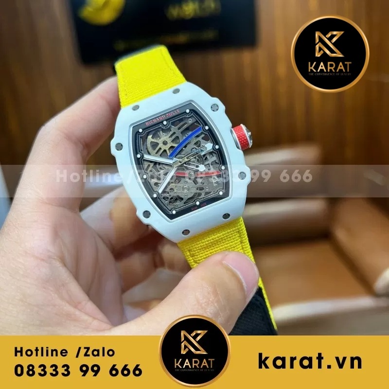 Đồng hồ Richard Mille RM67-02 White Ceramic Yellow Strap replica là lựa chọn hoàn hảo cho những ai yêu thích sự khác biệt và đẳng cấp thể thao hiện đại. Trải nghiệm ngay tại Karat.vn – nơi hội tụ những tuyệt phẩm Richard Mille chế tác tinh xảo nhất Việt Nam.