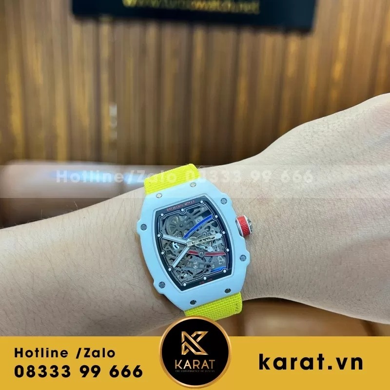 Tại Karat.vn, khách hàng có thể dễ dàng sở hữu đồng hồ richard mille rep 1:1 với chế độ bảo hành 5 năm, hỗ trợ spa làm mới, thu cũ đổi mới và bảo trì trọn đời. Mỗi sản phẩm đều được kiểm định kỹ lưỡng trước khi đến tay người dùng.