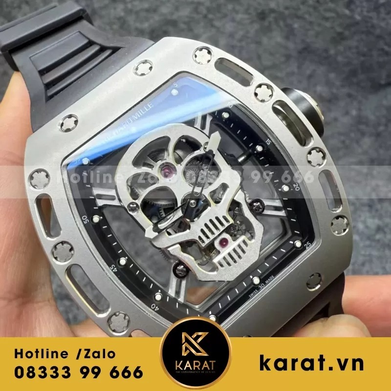 Ngay từ cái nhìn đầu tiên, Richard Mille RM052 Tourbillon Titanium Carbon đã khẳng định vị thế độc tôn của mình trong thế giới đồng hồ xa xỉ. Thiết kế lấy cảm hứng từ hộp sọ – biểu tượng của quyền lực và sự bất diệt – khiến RM052 trở thành tuyệt phẩm được giới sưu tầm săn đón. Cùng Karat - đồng hồ rep 1:1 khám phá chi tiết kiệt tác này.
