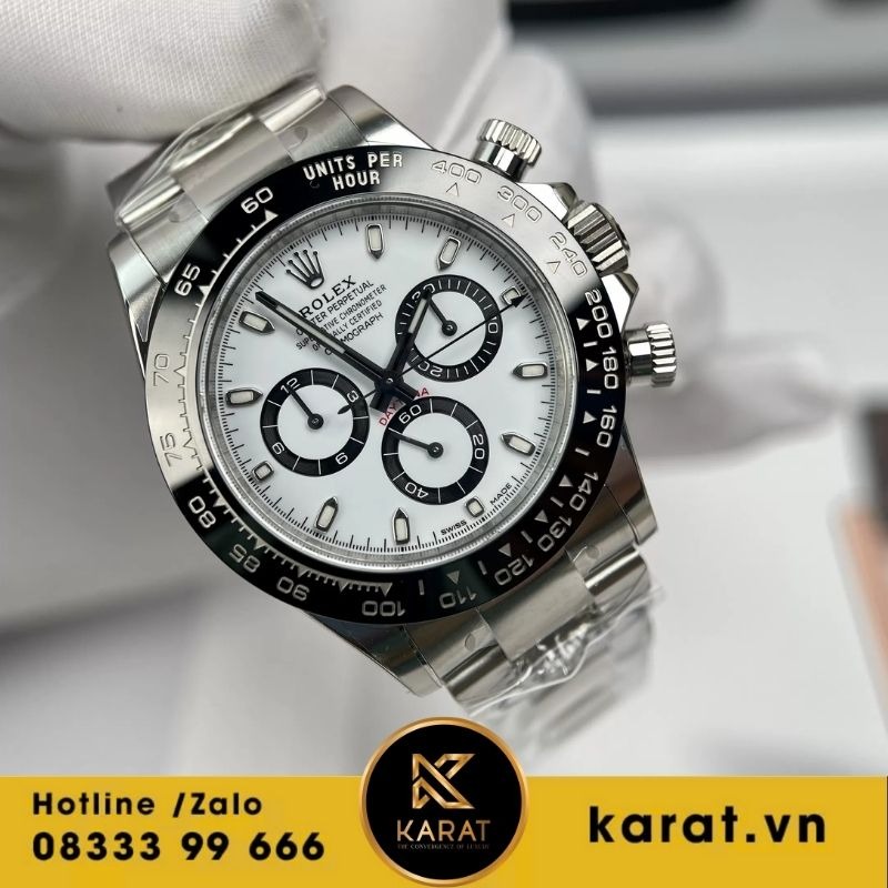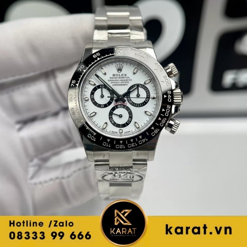 Karat.vn tự hào là đơn vị cung cấp các mẫu Rolex Cosmograph Daytona Replica 1:1 chất lượng cao, hoàn thiện tinh xảo. Tại đây, bạn sẽ được hưởng chính sách bảo hành 5 năm, miễn phí spa – lau dầu máy, và hỗ trợ thu đổi – lên đời đồng hồ giá tốt.