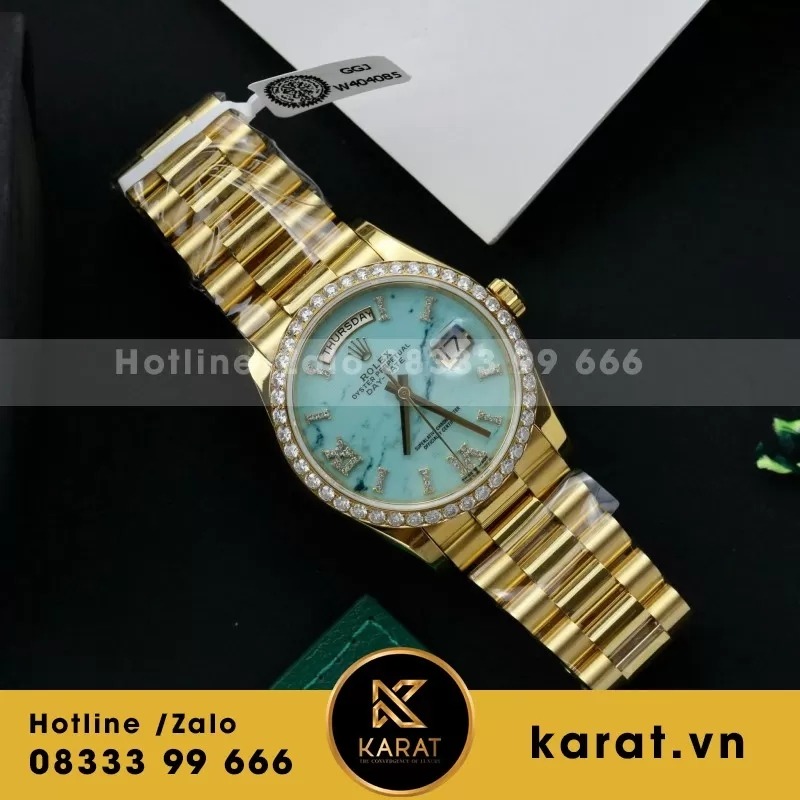 Karat.vn chế tác đồng hồ lấy cảm hứng từ Rolex DateJust bọc vàng với kỹ thuật thủ công tinh xảo, mang đến sản phẩm rolex datejust fake chất lượng cao nhưng vẫn hợp lý về giá. Đội ngũ nghệ nhân giàu kinh nghiệm tái hiện từng chi tiết sắc nét, kết hợp tư vấn cá nhân hóa, dịch vụ bảo hành chu đáo, giúp bạn dễ dàng sở hữu phiên bản mặt xanh ombre đính moissanite sang trọng và nổi bật.