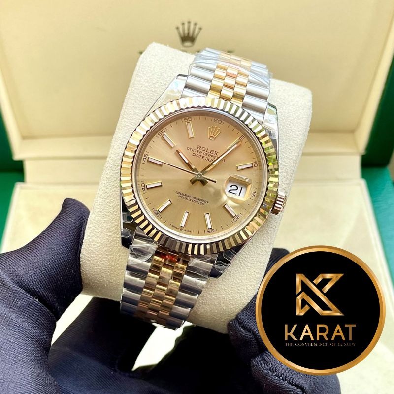 Đồng Hồ Rolex DateJust bọc vàng 18K 41mm là tuyên ngôn của sự thành công và đẳng cấp. Nếu bạn đang tìm kiếm một chiếc đồng hồ replica sang trọng, lịch lãm và bền bỉ theo năm tháng, hãy ghé ngay Karat để trải nghiệm siêu phẩm thời gian này.