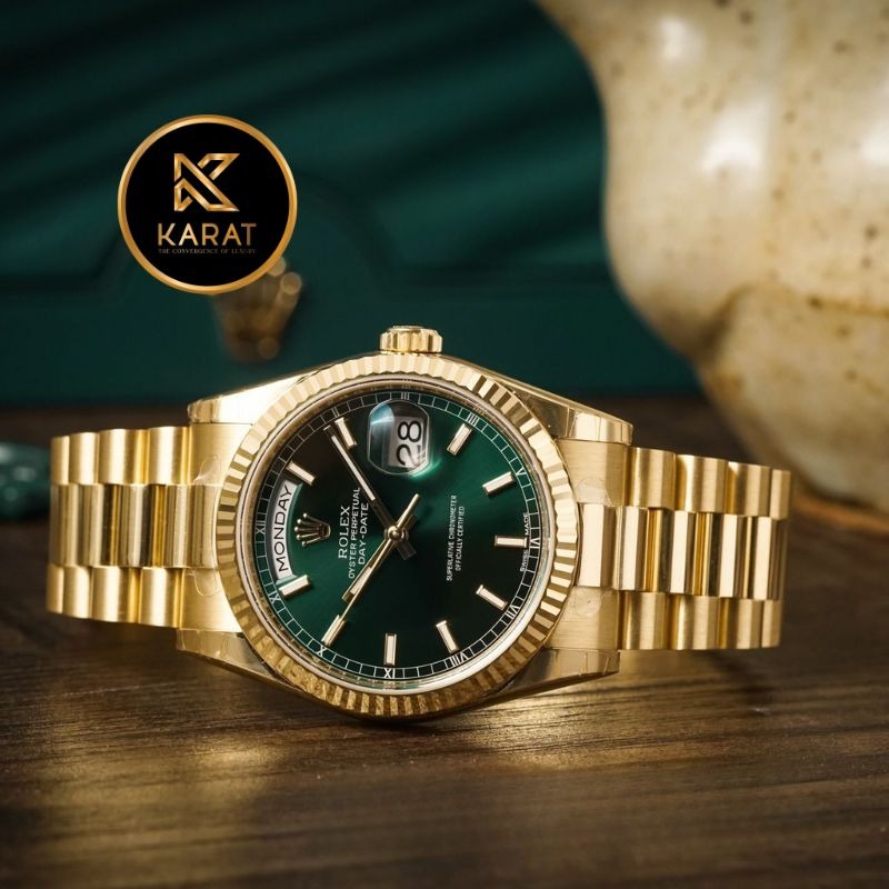 Karat.vn – Chuyên phân phối Đồng Hồ Rolex Day-Date Mặt Xanh Lá Bọc Vàng