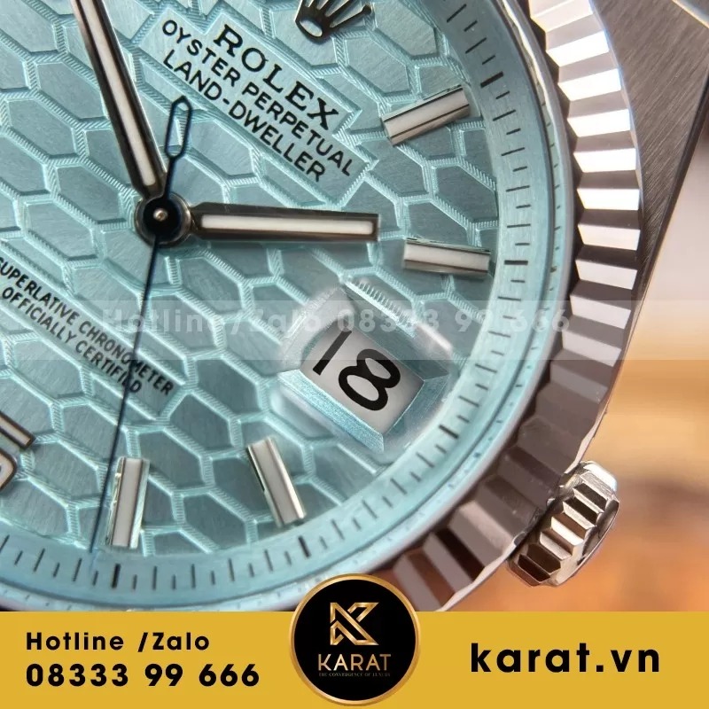 Phiên bản Land-Dweller 127236 mặt xanh băng là minh chứng cho nghệ thuật chế tác đỉnh cao của Rolex, hội tụ giữa phong cách sang trọng và độ bền vượt trội.
