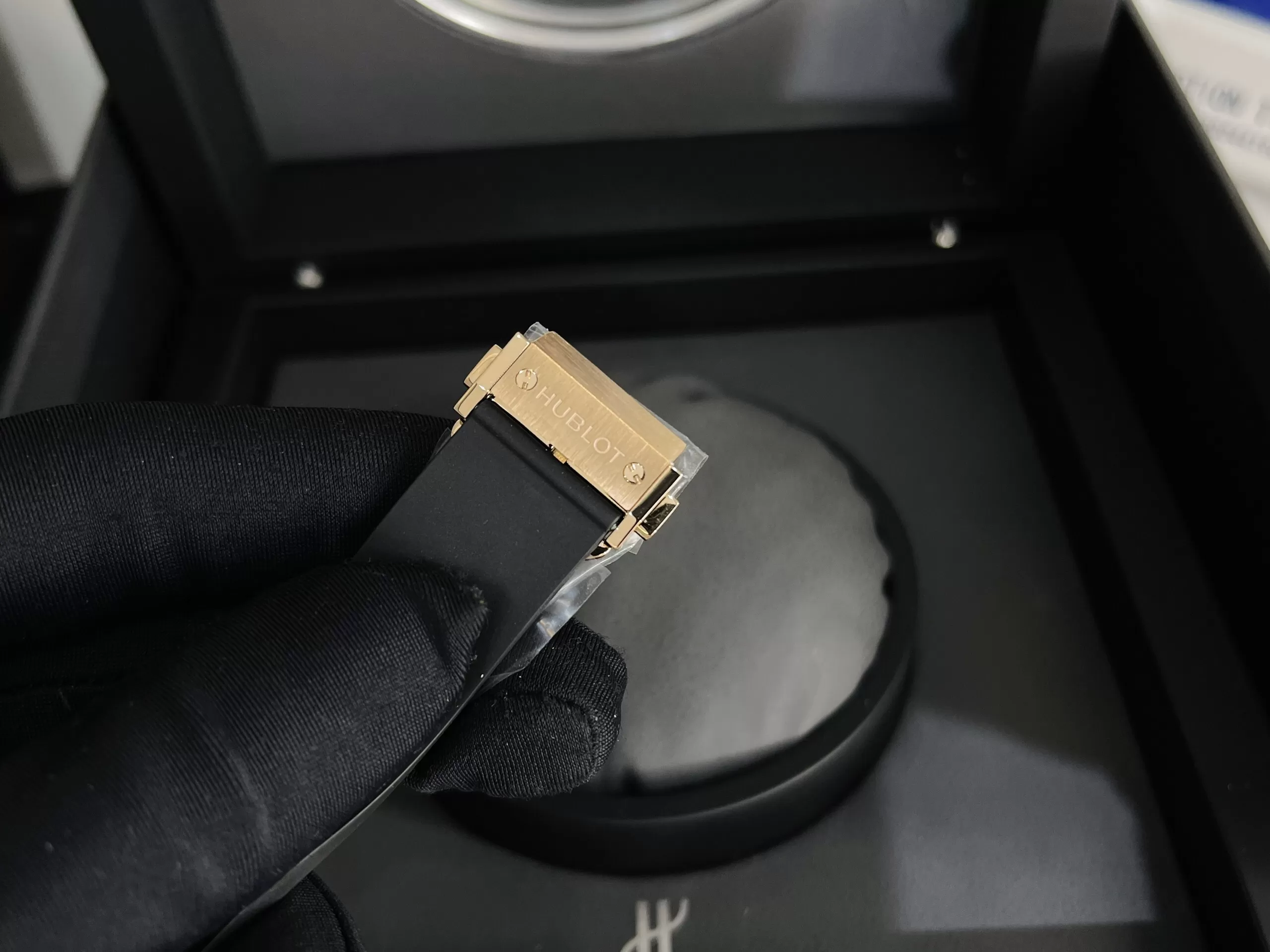 Dây đồng hồ Hublot Classic Fusion Orlinski King Gold Full Diamond bằng cao su thiên nhiên vân trơn nhẵn ôm tay tạo cảm giác thoải mái, dễ chịu khi đeo. Đây là chất liệu quen thuộc của hãng khó ông lớn nào trên thị trường có thể sánh bằng.