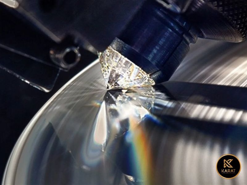 Công nghệ CNC hỗ trợ mài chính xác, nhưng tay nghề con người vẫn quyết định độ tinh xảo. Sau mài và đánh bóng kim cương, viên đá sẽ bắt đầu lộ rõ sức sống, với ánh sáng phản chiếu đa chiều. Bước này không chỉ nâng cao thẩm mỹ mà còn tăng giá trị thương mại lên gấp bội.