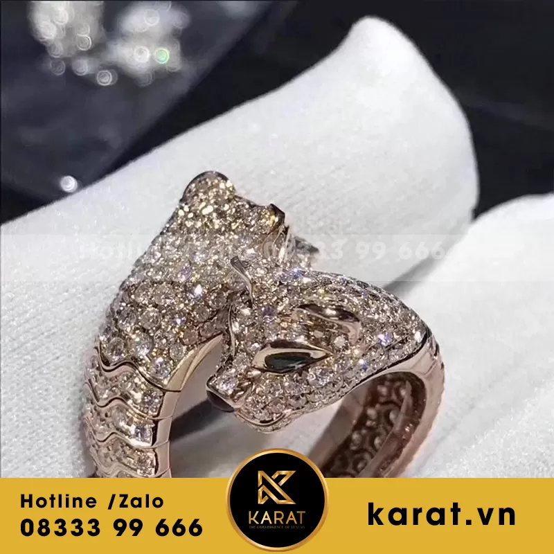 Nhẫn cartier báo vàng hồng kim cương thiên nhiên