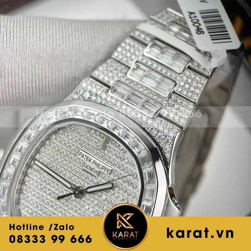 Tỏa sáng với vẻ đẹp xa hoa và đẳng cấp, đồng hồ Patek Philippe Nautilus 5719/10G-010 là kiệt tác đính kim cương toàn thân, khẳng định vị thế của những người yêu đồng hồ sang trọng bậc nhất.
