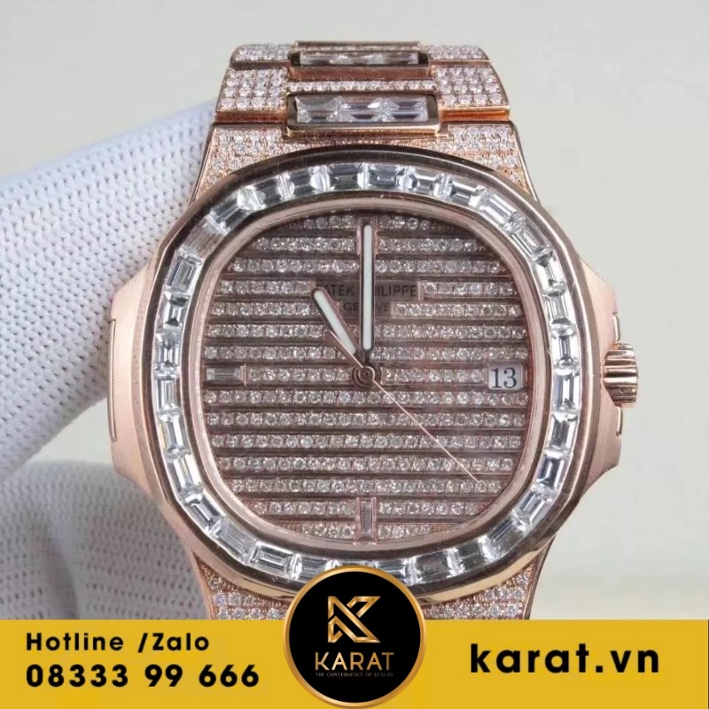 Karat.vn chuyên cung cấp đồng hồ Patek Philippe Nautilus 5719/10R-010 vàng hồng 18K đính kim cương baguette full diamond được chế tác tinh xảo, hoàn thiện tỉ mỉ với chất lượng cao cấp, đi kèm bảo hành uy tín và giao hàng toàn quốc nhanh chóng.
