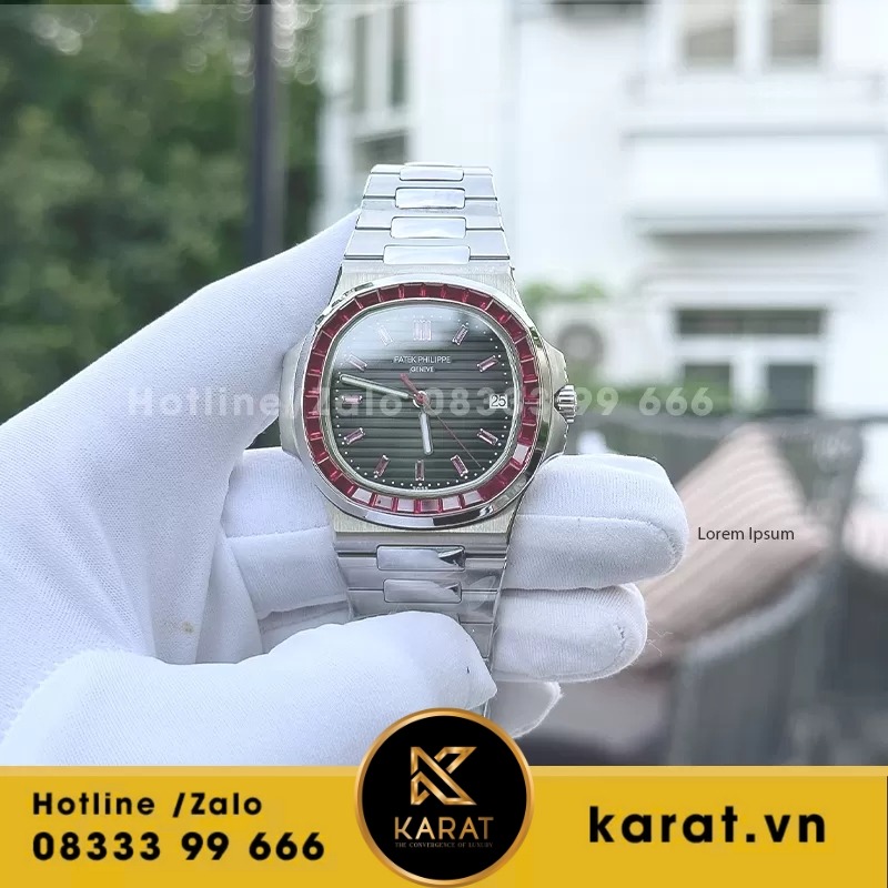 Karat.vn chuyên chế tác và phân phối đồng hồ Patek Philippe Nautilus 5723 ruby tổng hợp dial chất lượng, kèm bảo hành toàn diện cùng tư vấn chuyên nghiệp. Khách hàng dễ dàng mua qua website hoặc showroom với hộp đựng đầy đủ.