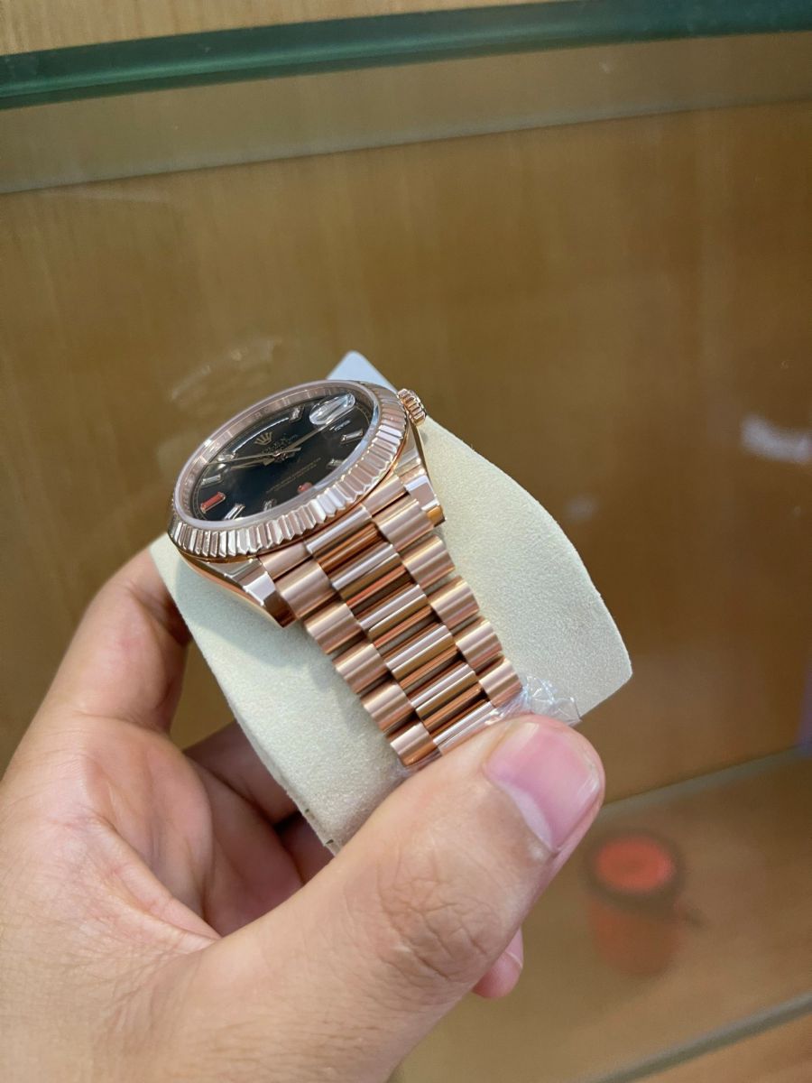 Các chi tiết trên đồng hồ Rolex Day-Date II 218235 Mặt Số Đen Chế Tác Vàng Đúc 18k đều được gọt giũa một cách tỉ mẫn, công phu với độ hoàn thiện gần như tuyệt đối. Khi đeo nó lên tay chắc chắn không ai nhận ra đâu là hàng auth đâu là hàng chế tác. Vì thế, không ít khách hàng dù đã sở hữu một model hàng hãng vẫn tậu thêm em này để thỏa mãn đam mê.