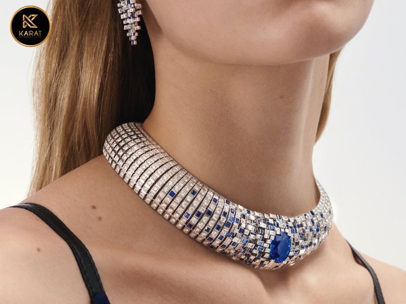 Dây chuyền Once in a Blue Moon được chế tác thủ công tinh xảo, với lớp hoàn thiện bóng loáng giúp tối ưu hóa ánh sáng, phù hợp cho những dịp trang trọng hoặc layer với trang phục hàng ngày. Giá trị của món đồ nằm ở sự hiếm có của sapphire velvety blue, không chỉ nâng tầm thẩm mỹ mà còn thể hiện sự khéo léo trong việc hòa quyện motif cổ điển vào chủ đề vũ trụ của Stellar Times.