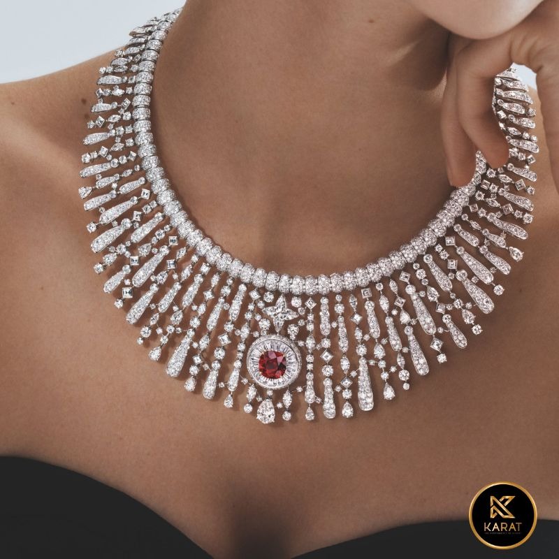 Sức sống của Mars Rising nằm ở sự tương phản màu sắc mạnh mẽ, nơi ruby tượng trưng cho năng lượng vũ trụ, kết hợp hài hòa với kim cương để tăng độ tán xạ ánh sáng. Là một phần của Stellar Times, vòng cổ này thể hiện tinh thần khám phá táo bạo của Louis Vuitton, phù hợp cho những ai yêu thích phong cách mạnh mẽ và phiêu lưu.
