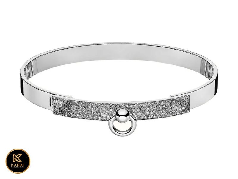 Các nút đai Medor dập nổi tạo texture thú vị, chống trầy xước tốt nhờ lớp mạ palladium. Phù hợp phối với áo sơ mi hoặc jacket da, sản phẩm này tượng trưng cho sự bảo vệ và tự tin. Giá khoảng 40-55 triệu đồng, vòng tay Collier De Chien là lựa chọn kinh điển trong trang sức Hermes cho nam giới.