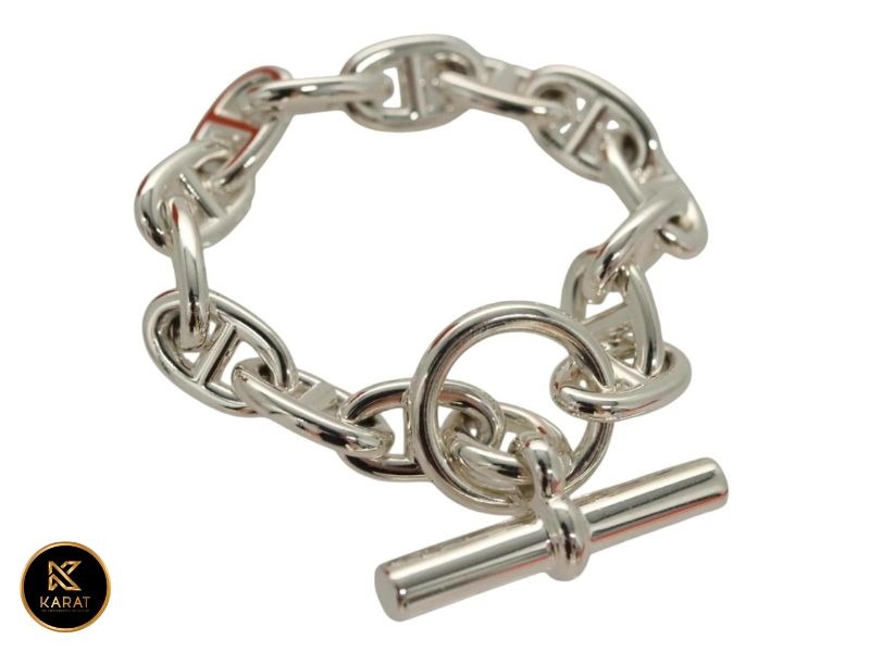 Trang sức Hermes cho nam giới chinh phục phái mạnh nhờ sự hòa quyện tinh tế giữa di sản thủ công Pháp và tính ứng dụng cao. Mỗi thiết kế đều mang tính biểu tượng nhưng không phô trương — như chữ H hay khóa Kelly – giúp quý ông thể hiện đẳng cấp tinh tế mà vẫn hài hòa cùng trang phục. Chất liệu cao cấp như da bê Epsom chống trầy xước hay bạc sterling mạ rhodium không chỉ mang lại vẻ sang trọng mà còn đảm bảo độ bền vượt trội, lý tưởng cho phong cách sống năng động.